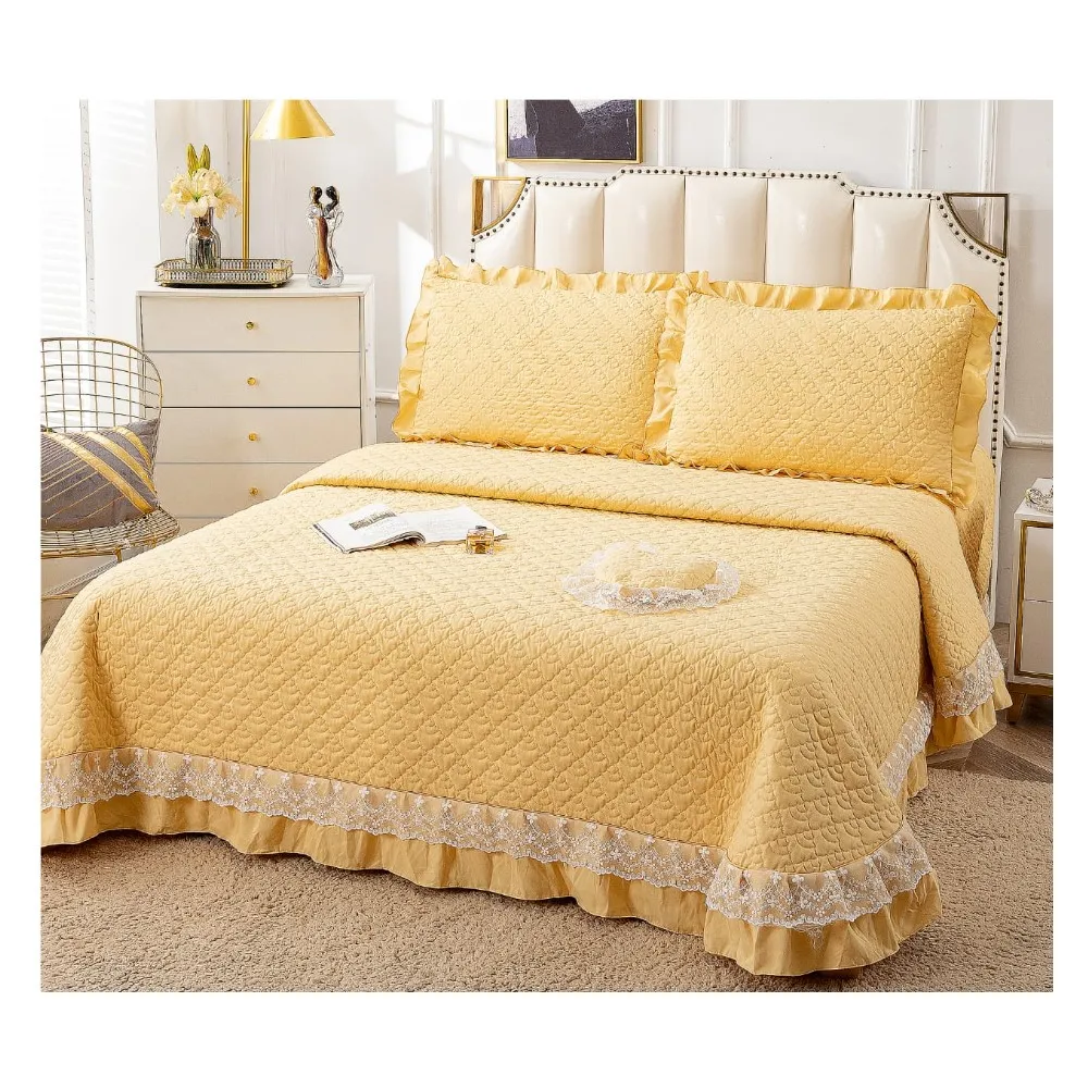 Set Cuvertura de Pat din Bumbac, 4 Piese, Galben - PIT164