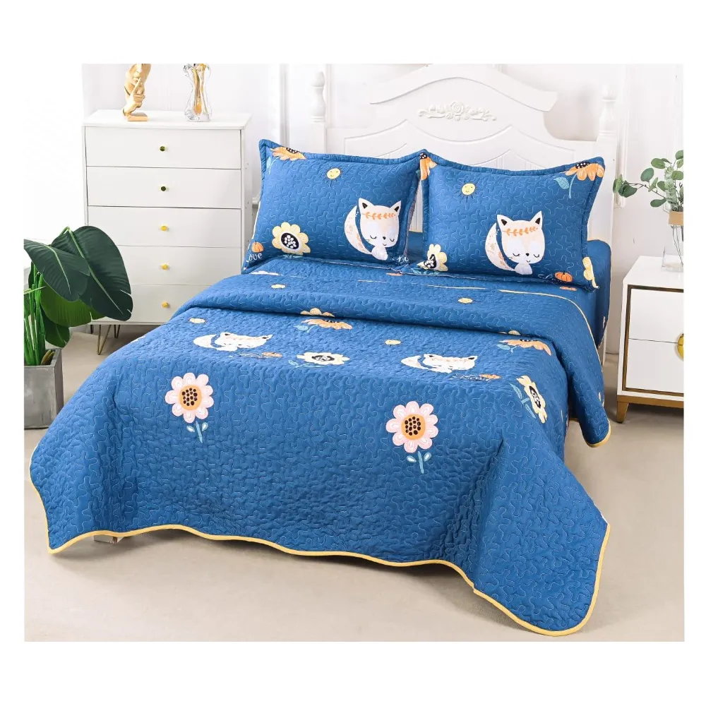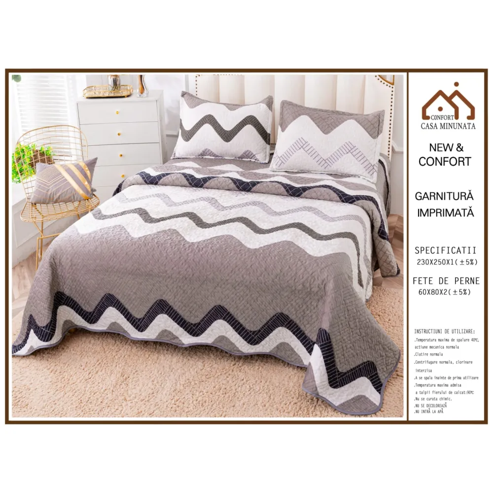 Set Cuvertura de Pat din Bumbac, 3 Piese cu Model - PIT177