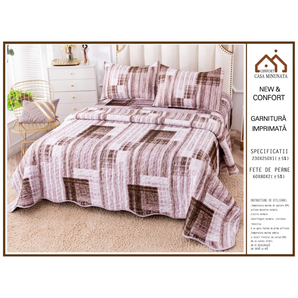 Set Cuvertura de Pat din Bumbac, 3 Piese cu Model - PIT169