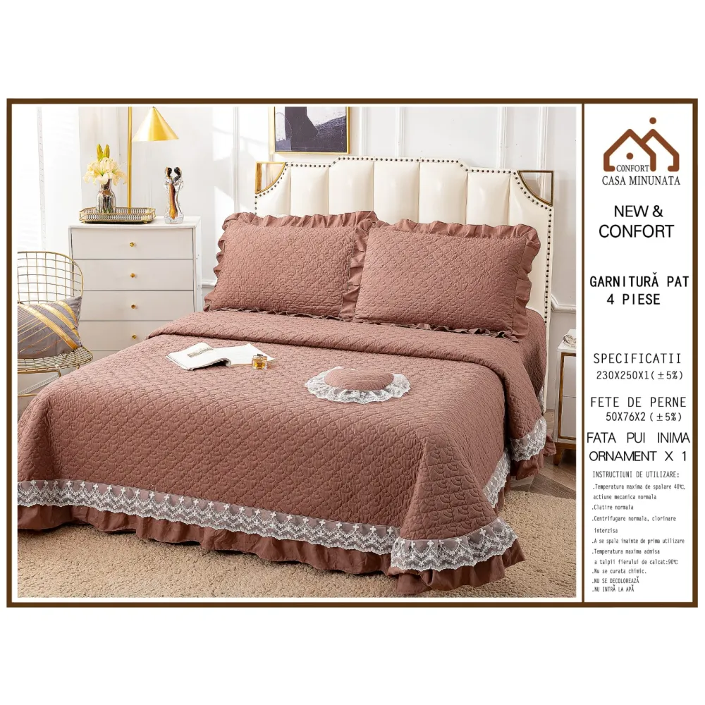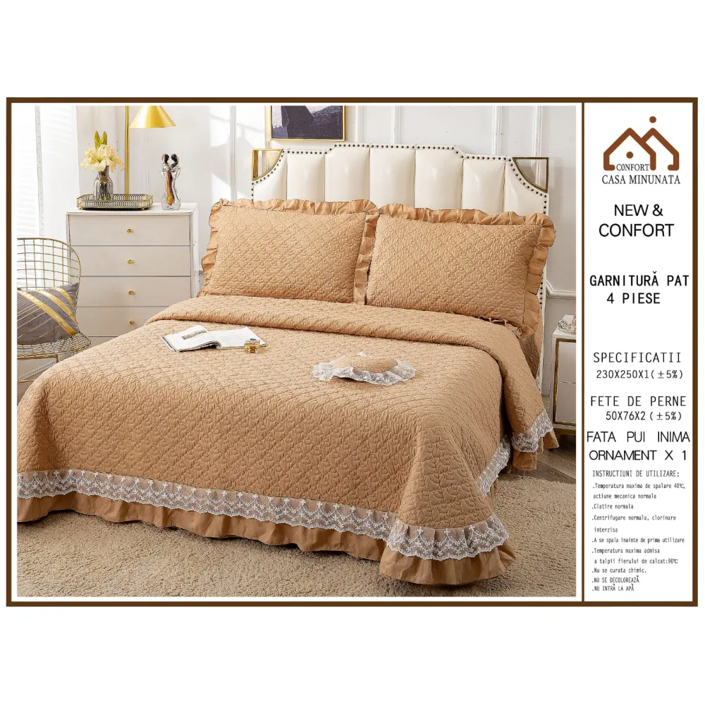 Set Cuvertura de Pat din Bumbac, 4 Piese, Maro Deschis - PIT155