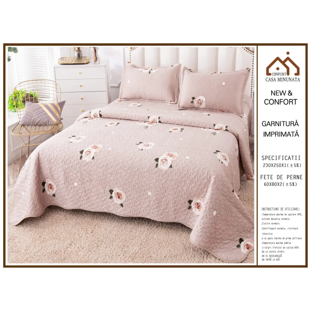 Set Cuvertura Catifea Pat Dublu 3 Piese - PIT149