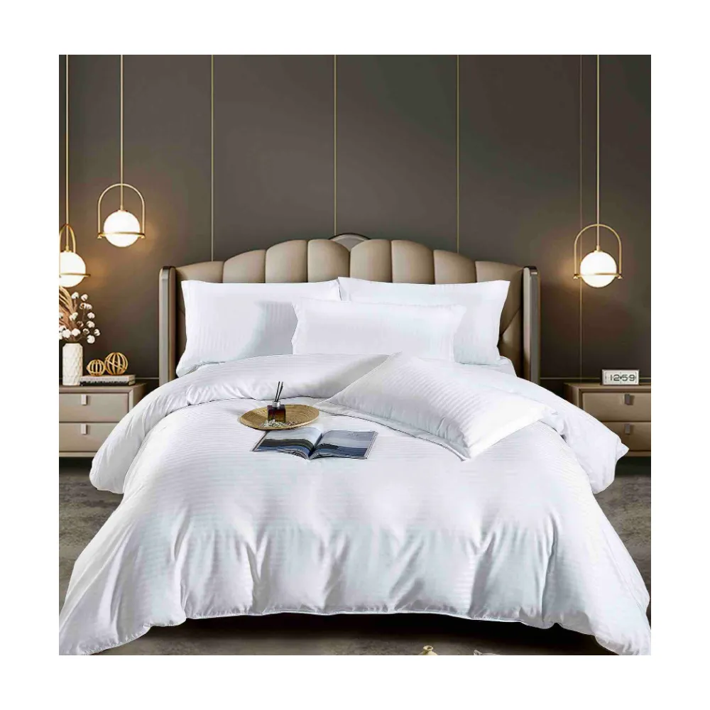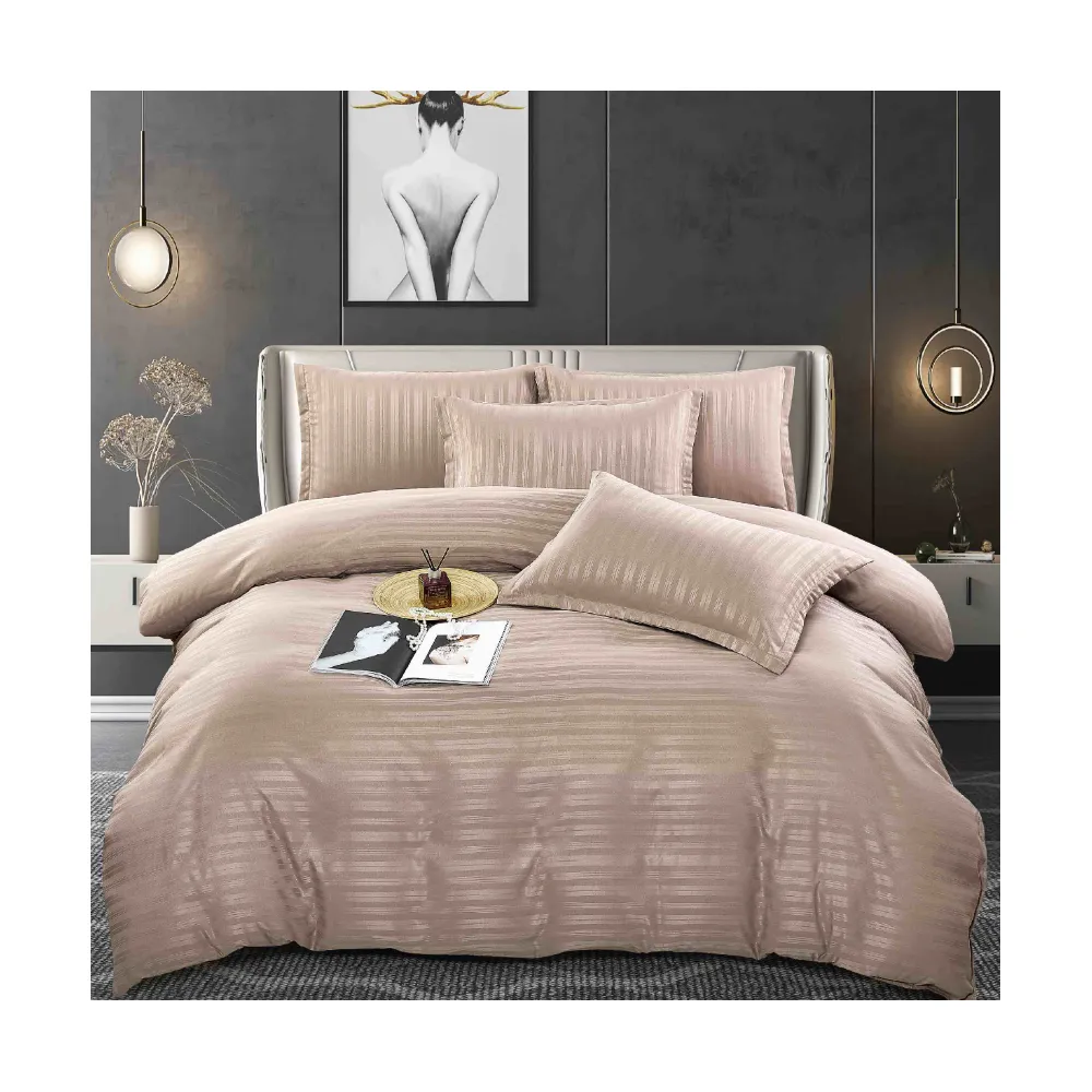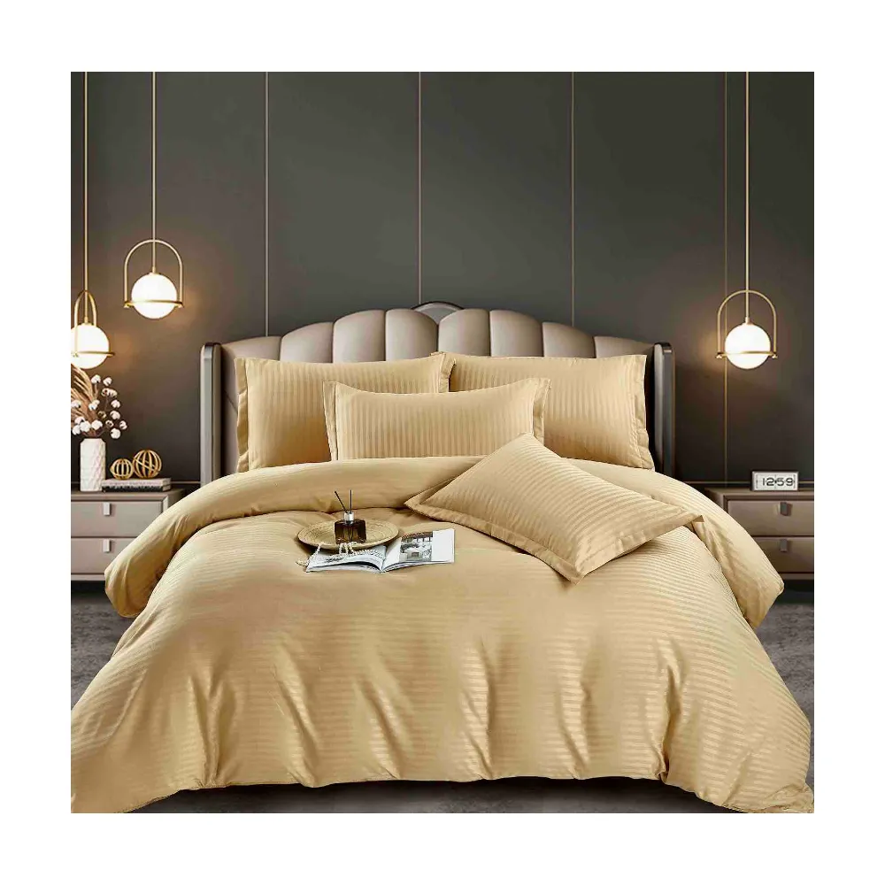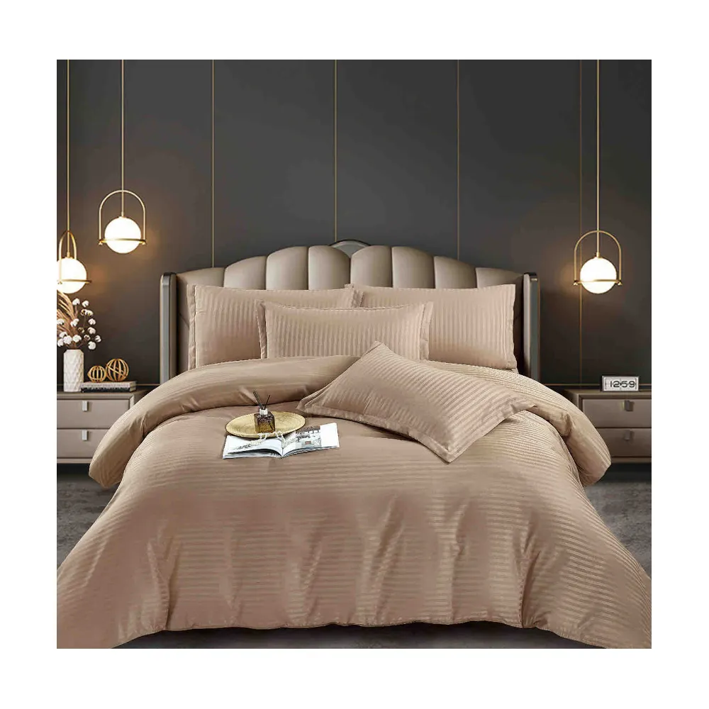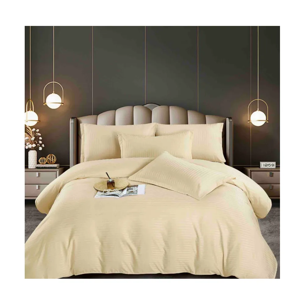Lenjerie de Pat Damasc 6 Piese, Dungi Duble,Bej- JO334