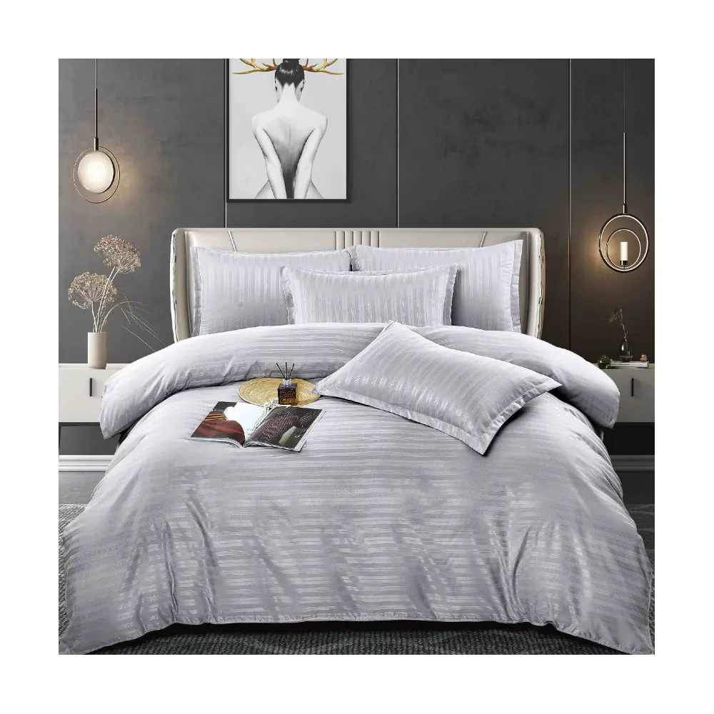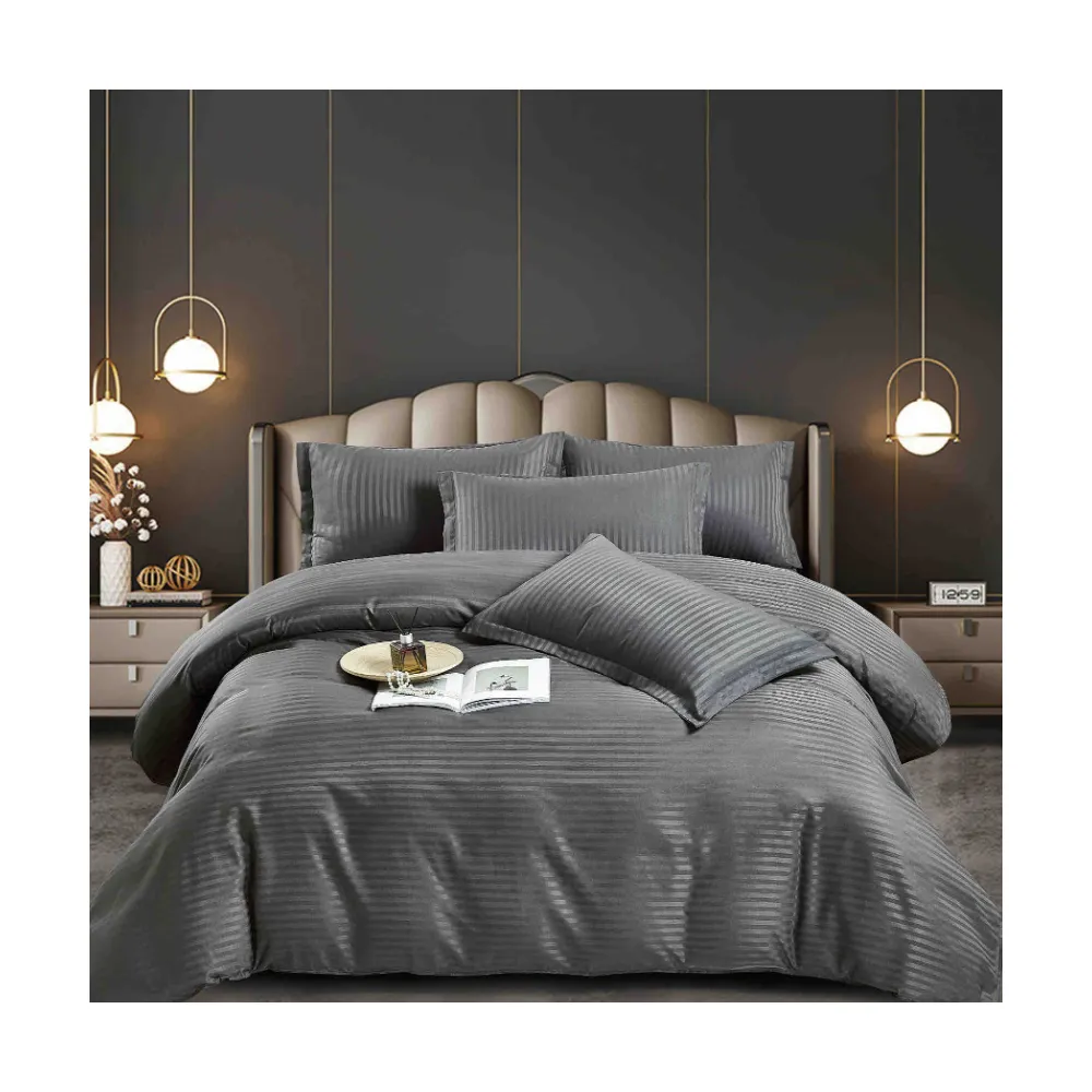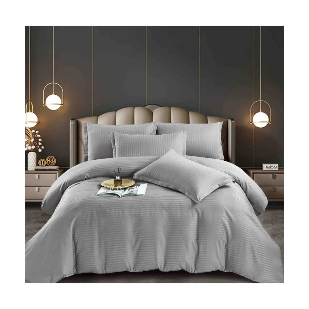 Lenjerie de Pat Damasc 6 Piese, Dungi Duble,Gri- JO336