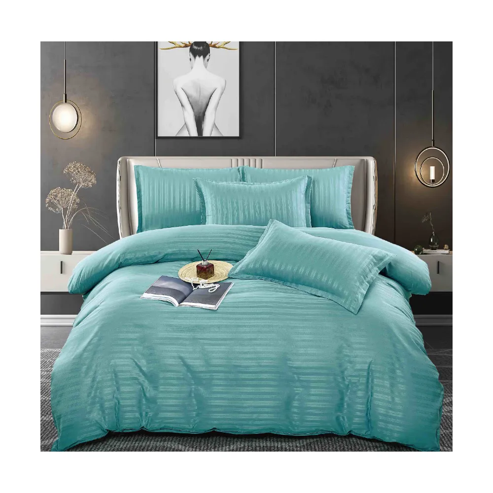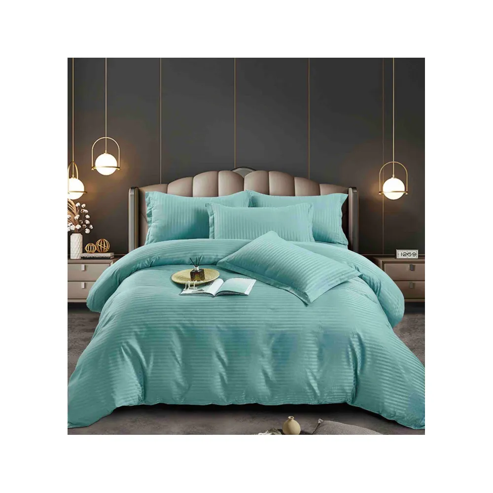 Lenjerie de Pat Damasc 6 Piese, Dungi Duble,Turcoaz- JO339