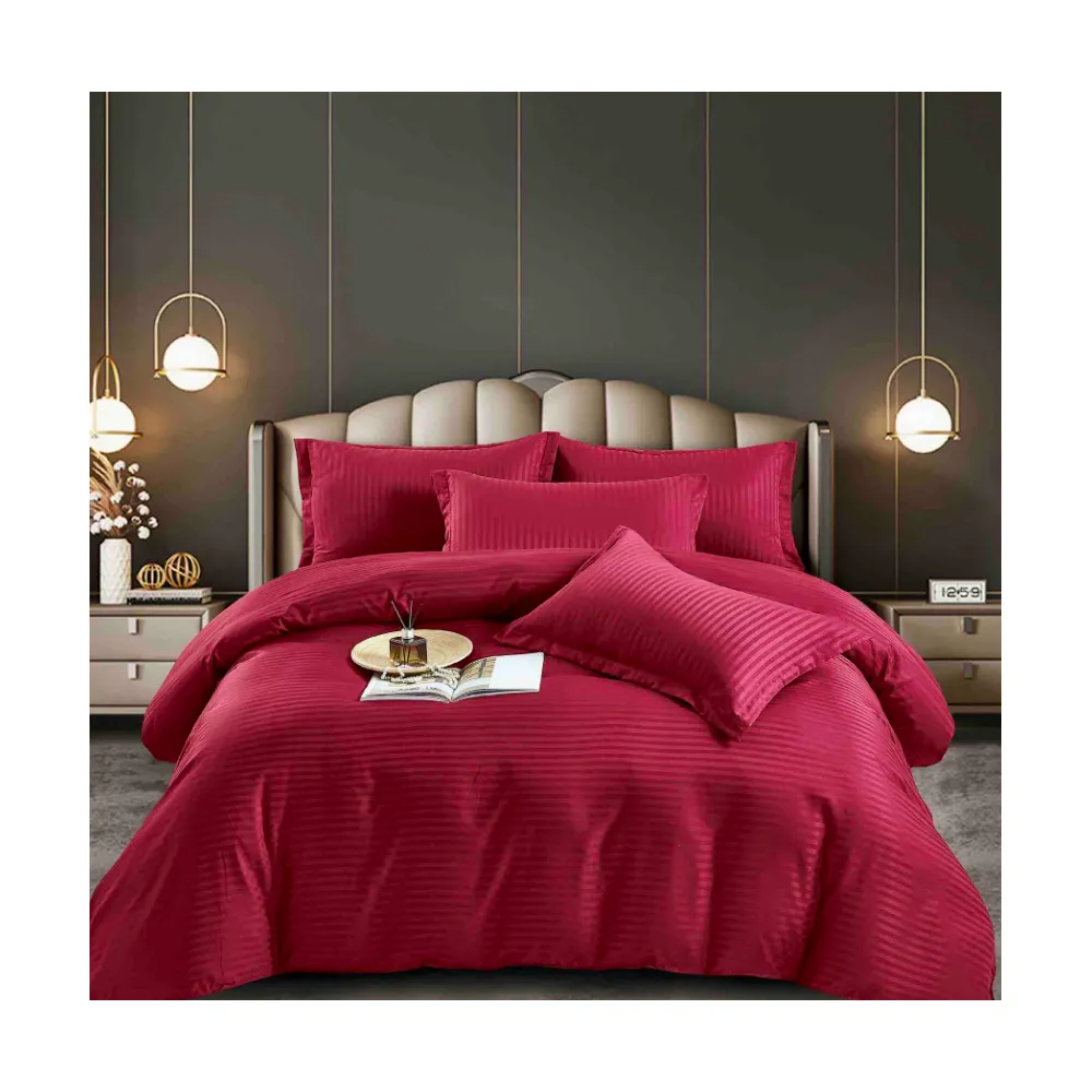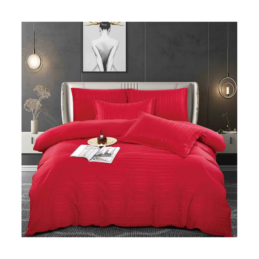 Lenjerie de Pat Damasc 6 Piese, Dungi Duble,Rosu- JO338