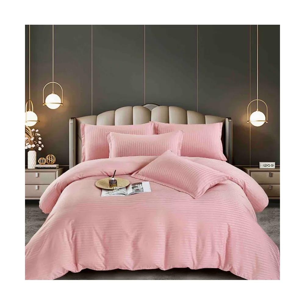 Lenjerie de Pat Damasc 6 Piese, Dungi Duble,Roz Pudra- JO335