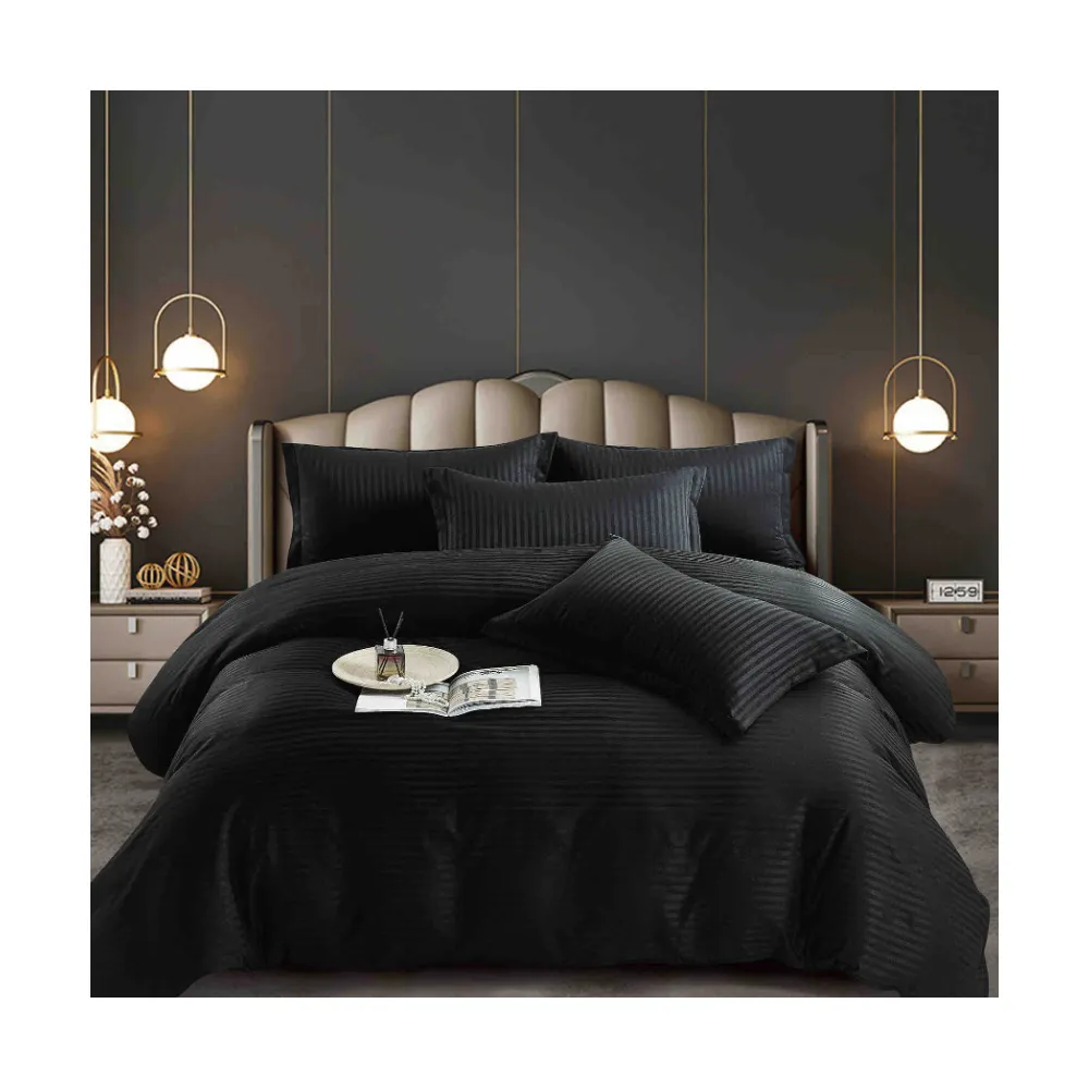 Lenjerie de Pat Damasc 6 Piese, Dungi Duble,Negru- JO337