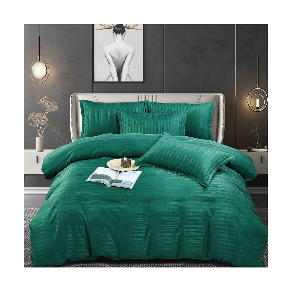 Lenjerie de Pat Damasc 6 Piese, Dungi Duble,Verde Smarald- JO340