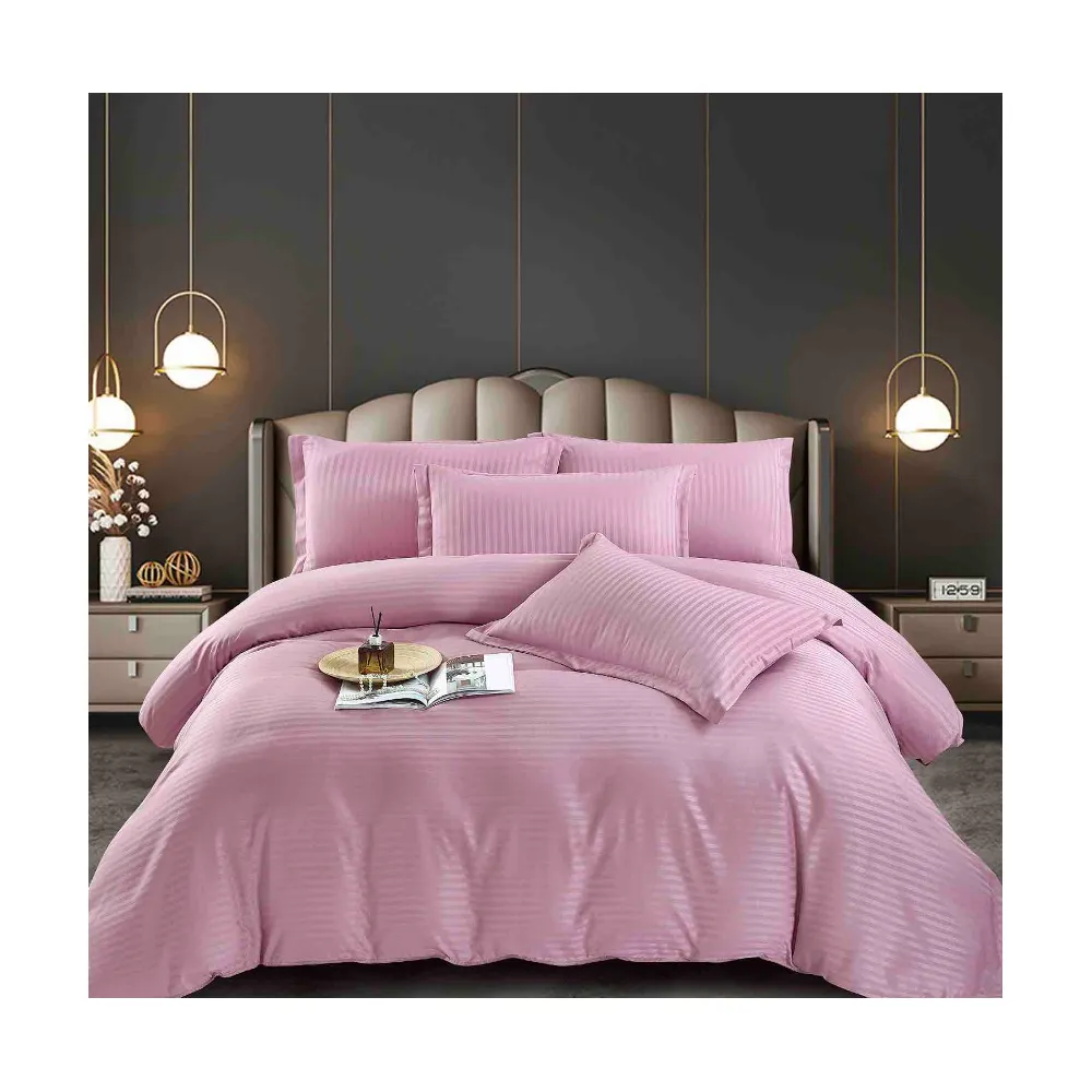Lenjerie de Pat Damasc 6 Piese, Dungi Duble, Roz Inchis- JO332
