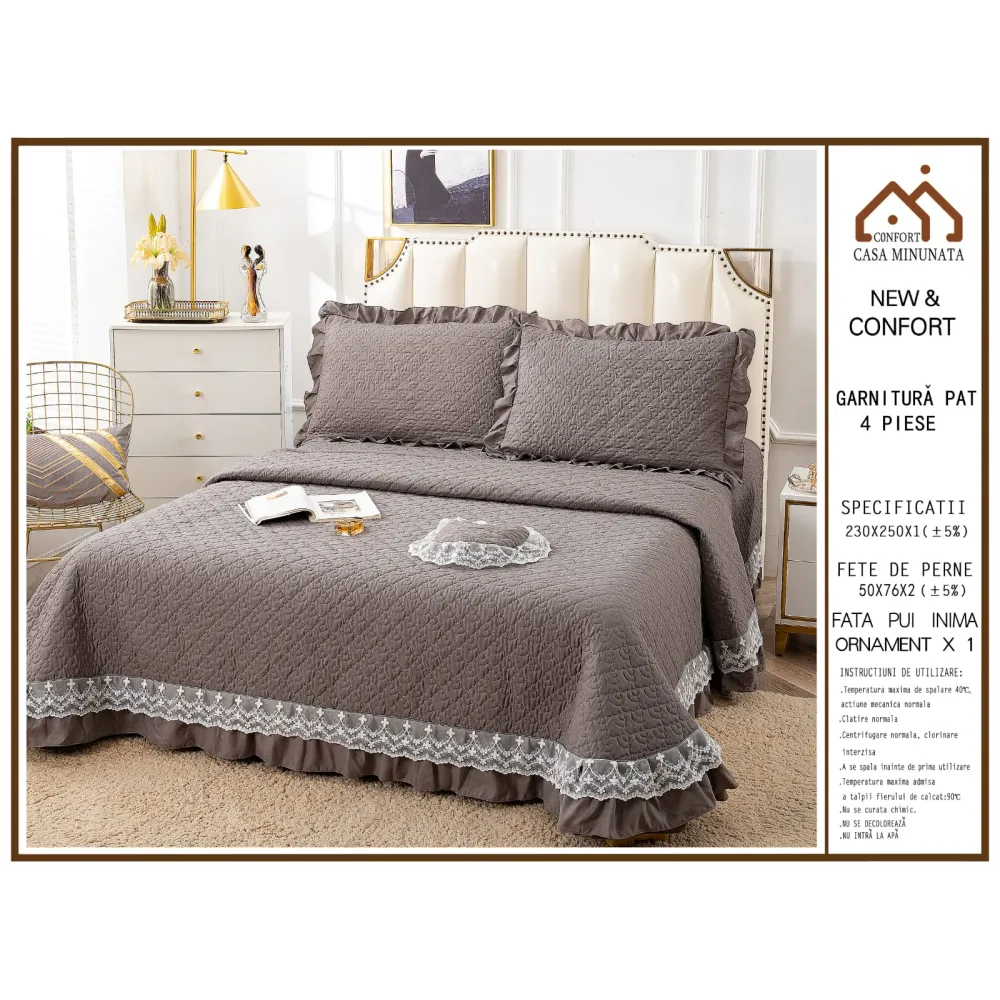 Set Cuvertura de Pat din Bumbac, 4 Piese, Gri Inchis - PIT167