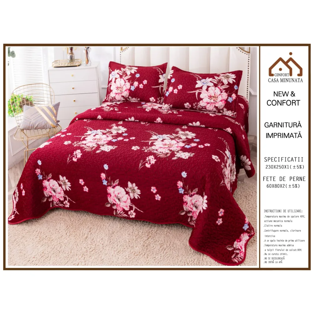 Set Cuvertura de Pat din Bumbac, 4 Piese, Bordo - PIT154