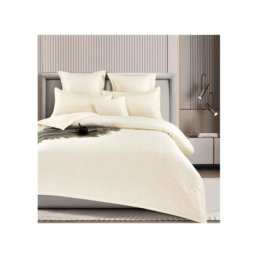 Lenjerie de Pat din Catifea, pentru Pat Dublu, 4 Piese, Crem Deschis cu Margine Alba - FR146