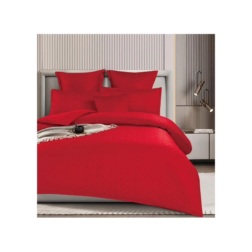 Lenjerie de pat dublu Bumbac Finet cu Carouri 6 Piese cu Elastic, Rosu- SIPRT4-02