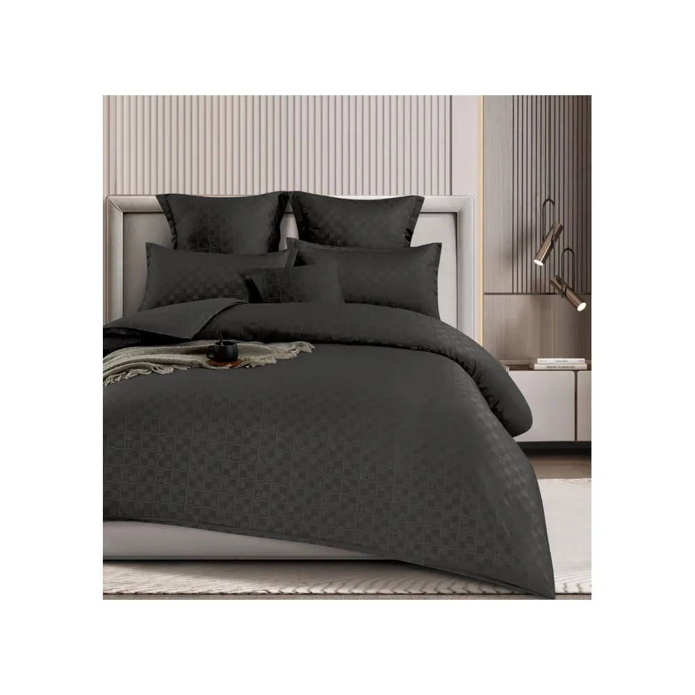 Lenjerie de pat dublu Bumbac Finet cu Carouri 6 Piese cu Elastic, Negru- SIPRT4-04
