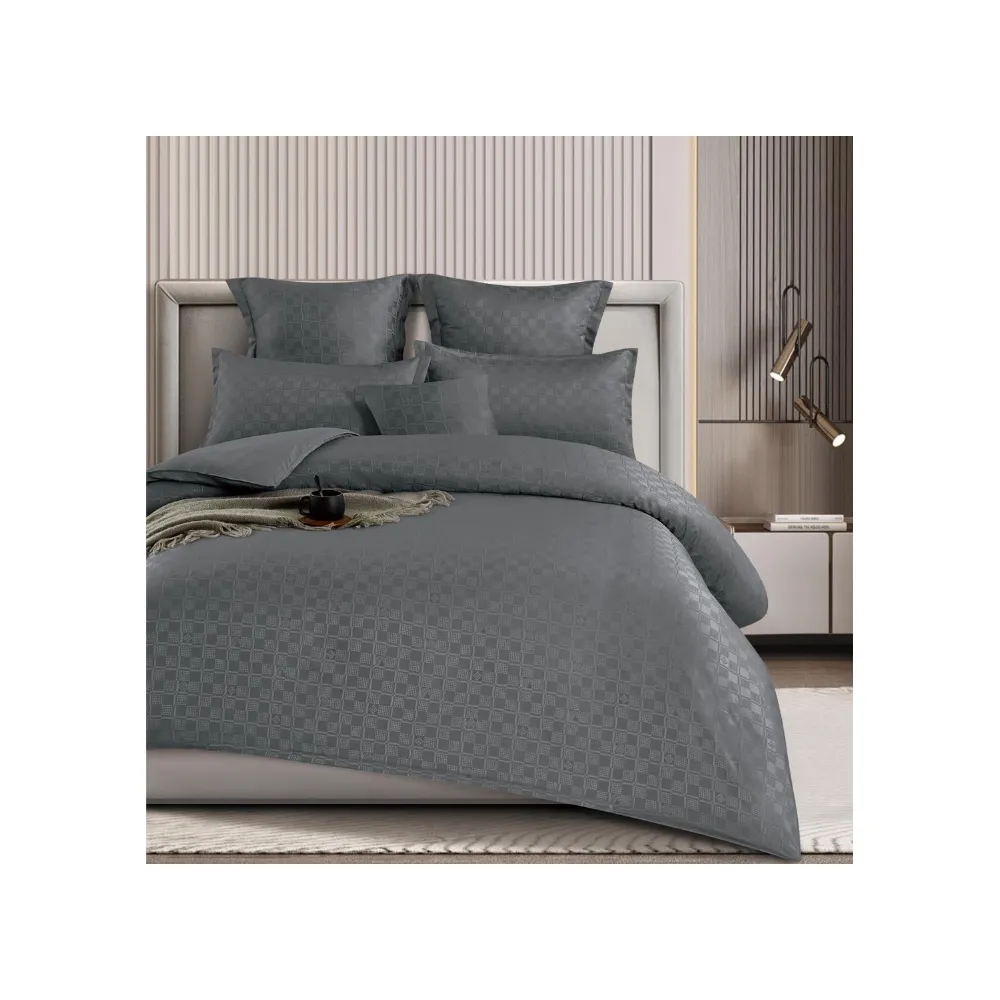 Lenjerie de pat dublu Bumbac Finet cu Carouri 6 Piese cu Elastic, Gri Inchis - SIPRT4-06