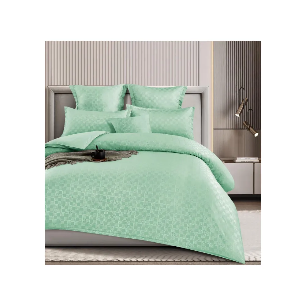 Lenjerie de pat dublu Bumbac Finet cu Carouri 6 Piese cu Elastic, Verde Menta- SIPRT4-03