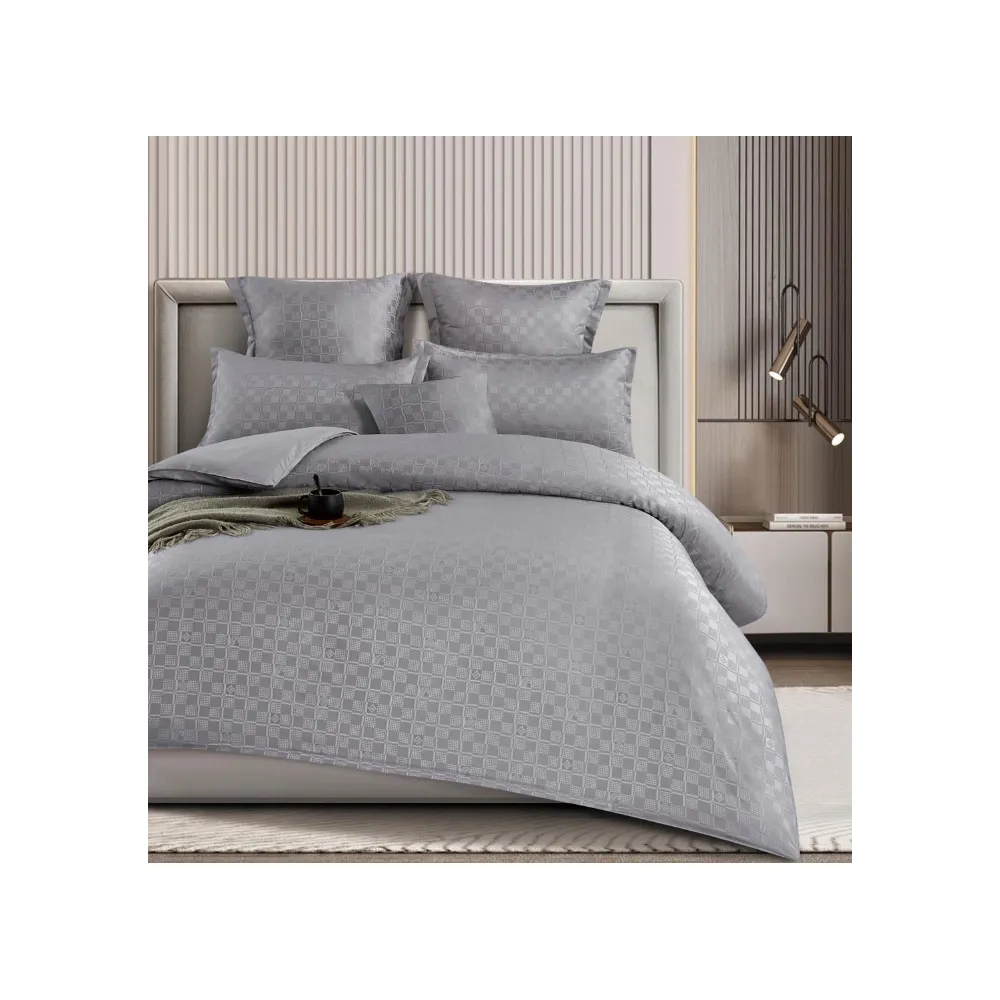 Lenjerie de pat dublu Bumbac Finet cu Carouri 6 Piese cu Elastic, Gri Deschis - SIPRT4-08