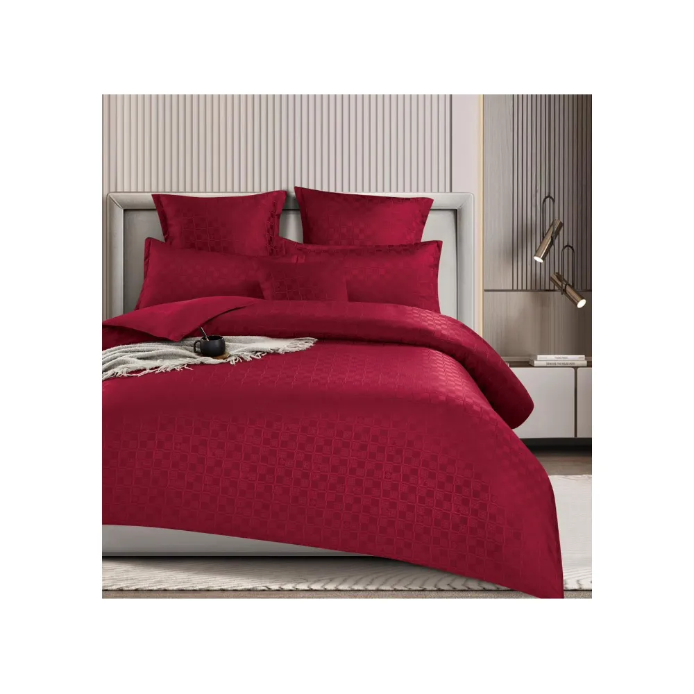 Lenjerie de pat dublu Bumbac Finet cu Carouri 6 Piese cu Elastic, Bordo - SIPRT4-15