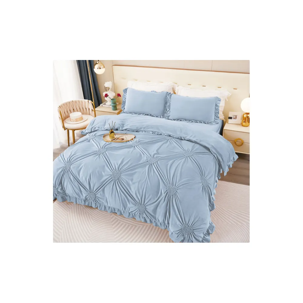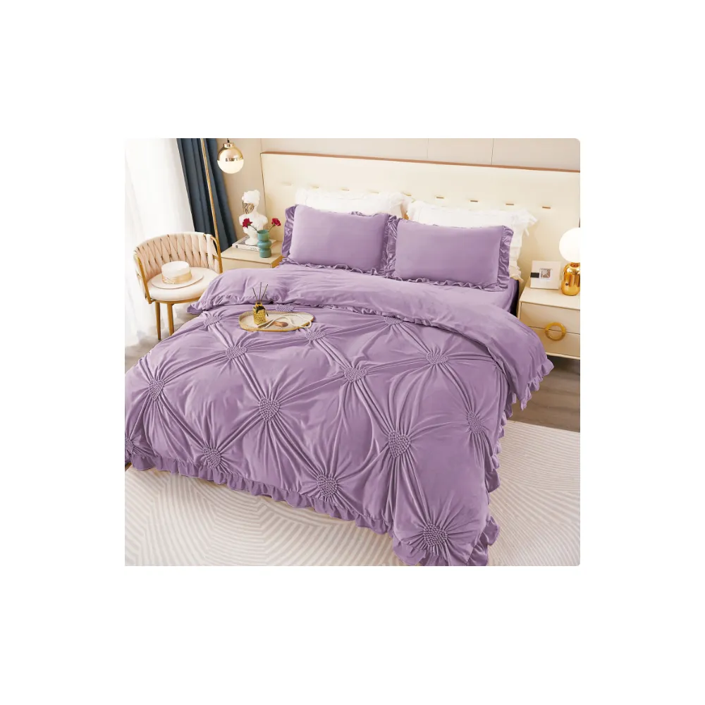 Lenjerie de Pat, 4 0Piese din Catifea, cu Volanase, pentru Pat dublu, Lavanda - FR148