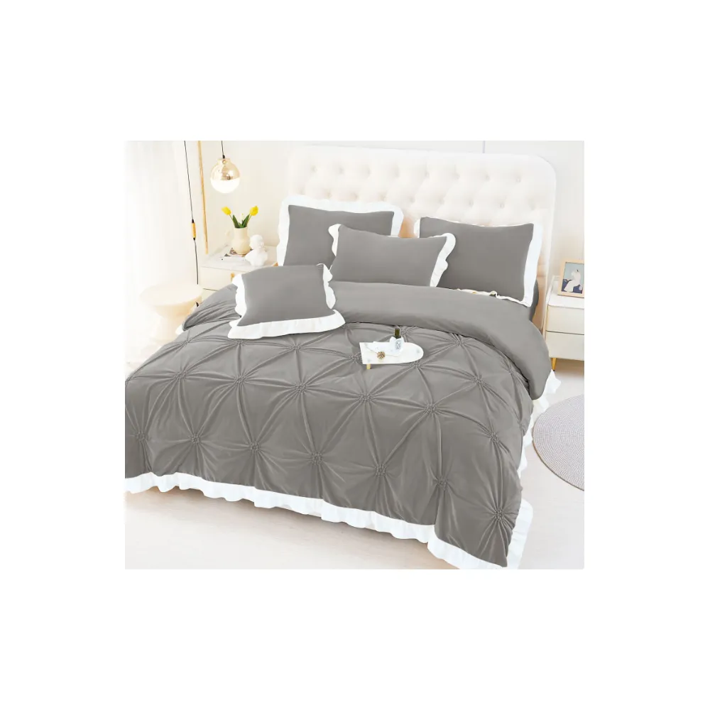 Lenjerie de Pat, 4 Piese din Catifea, cu Volanase, pentru Pat dublu, Gri - FR155