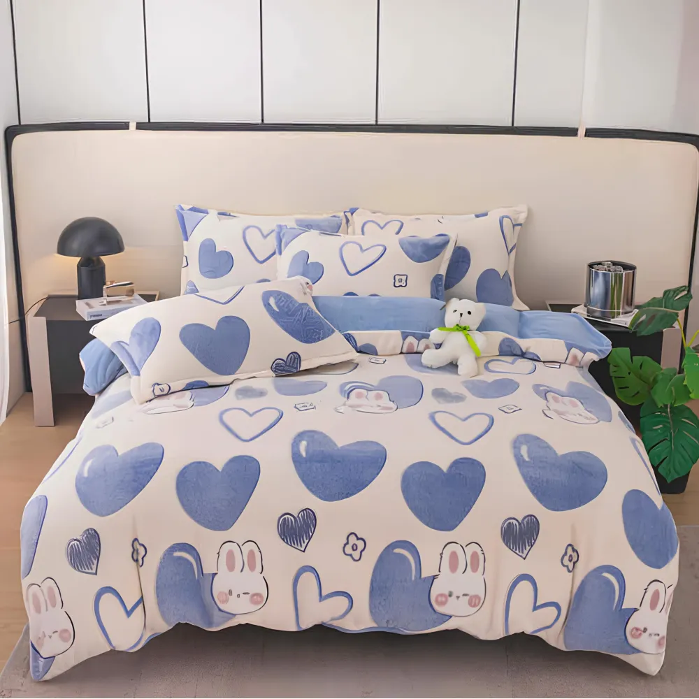 Lenjerie Cocolino 4 Piese Pentru Pat Dublu cu Elastic- JO285 Inimi Albastre