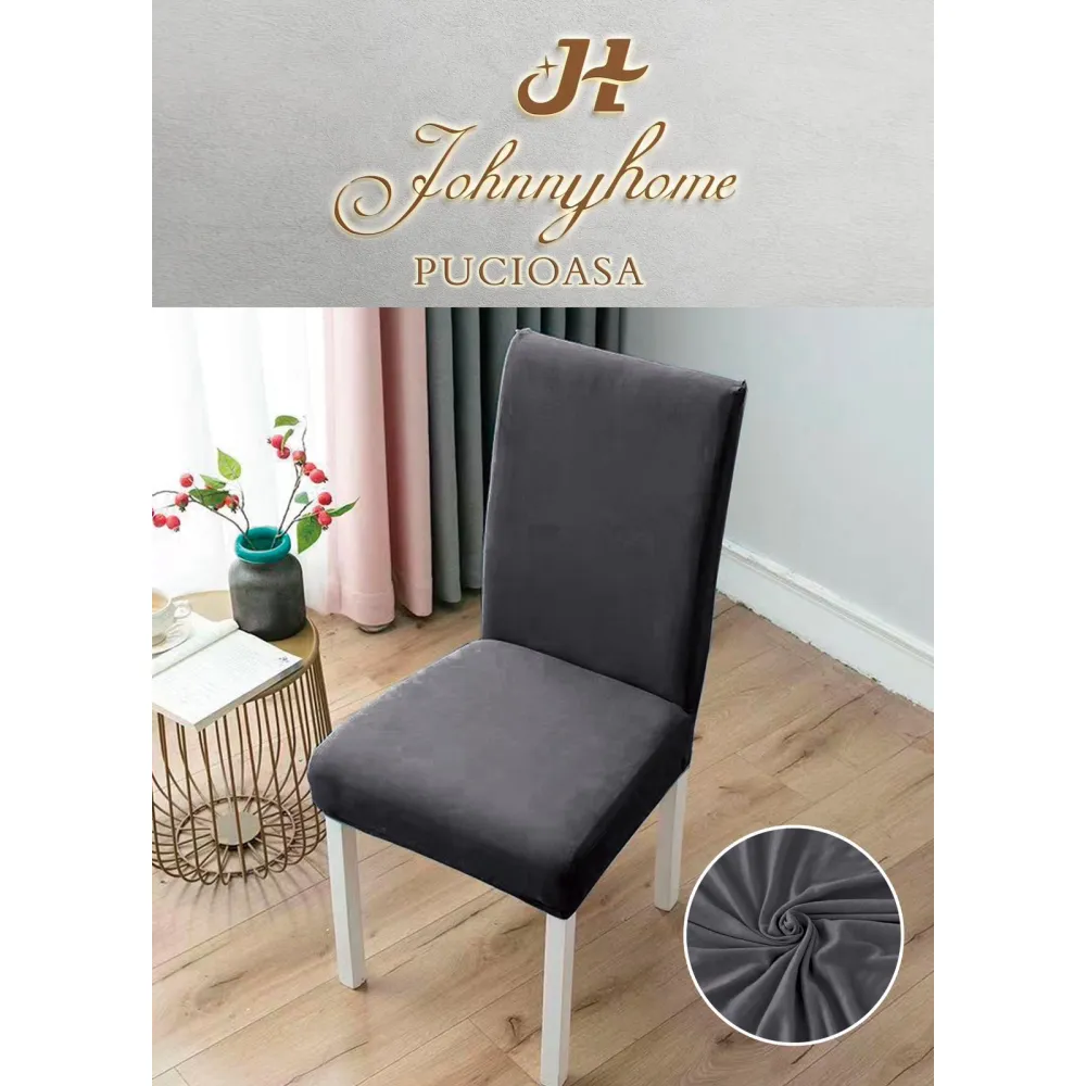 Set 4 Huse Elastice pentru Scaun, Bumbac, Gri Inchis- SIPRS04