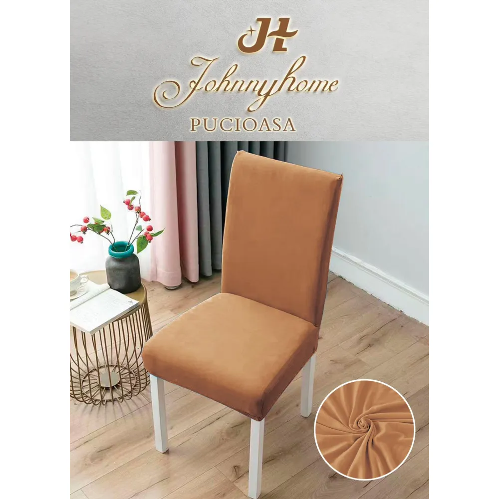 Set 4 Huse Elastice pentru Scaun, Bumbac, Cu Elastic, Maro - SIPRS12