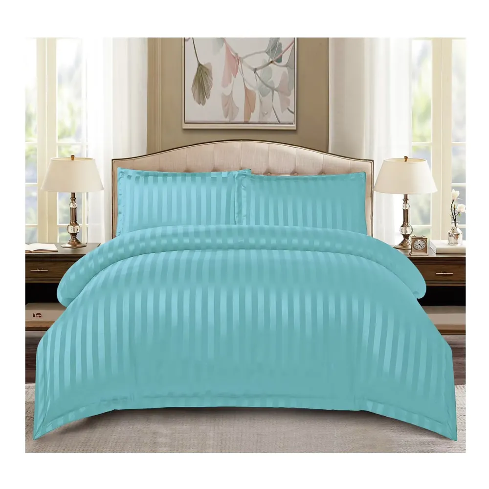 Lenjerie de Pat Dublu Bumbac Damasc 6 Piese cu Elastic, Turcoaz - CPL140