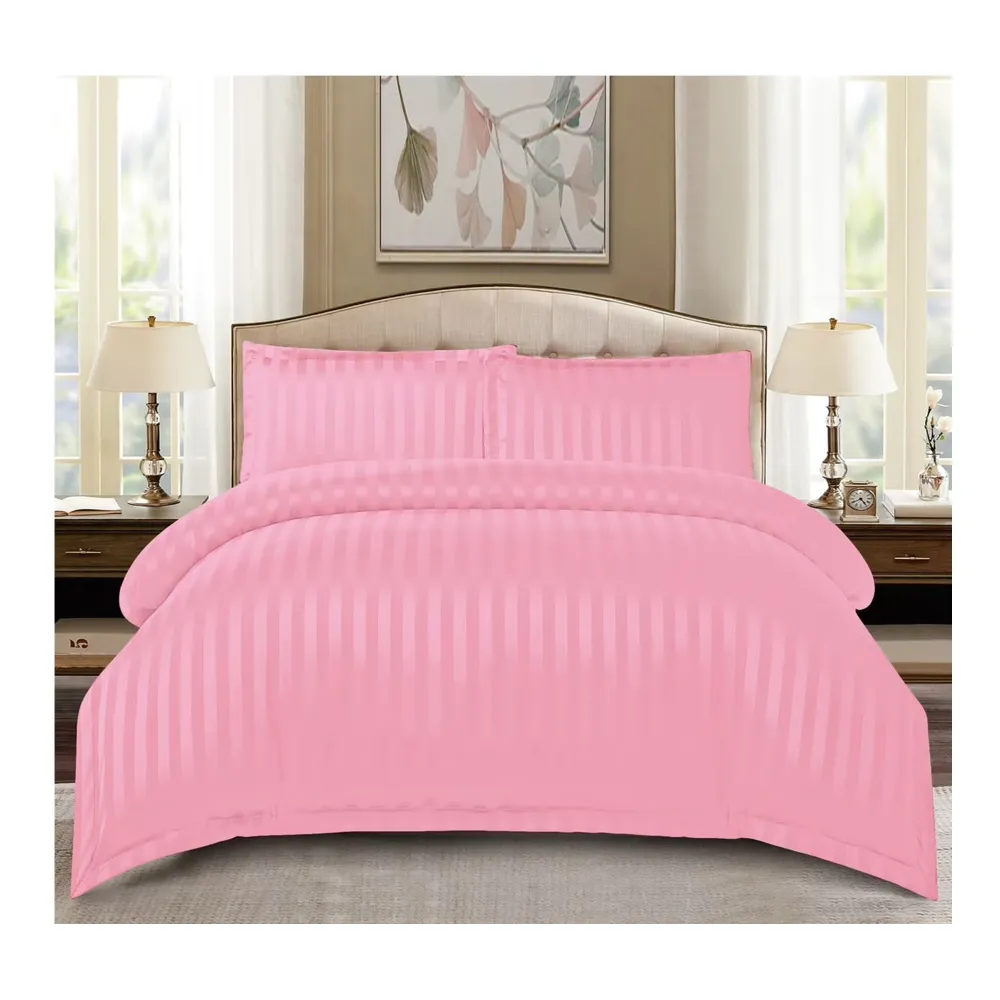 Lenjerie de Pat Dublu Bumbac Damasc 4 Piese cu Elastic, Roz - CPL14