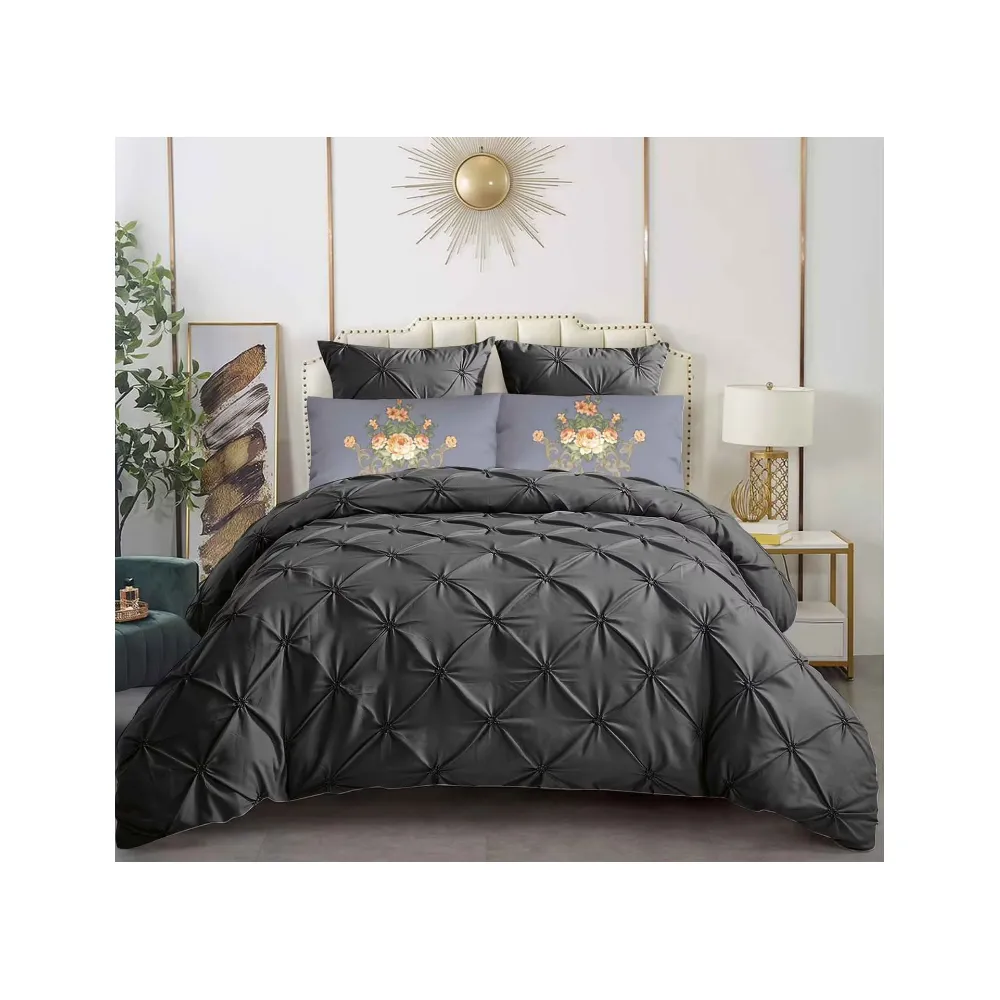 Lenjerie de Pat Dublu, Bumbac Finet-Creponat, 6 Piese, Gri Inchis - CPL23