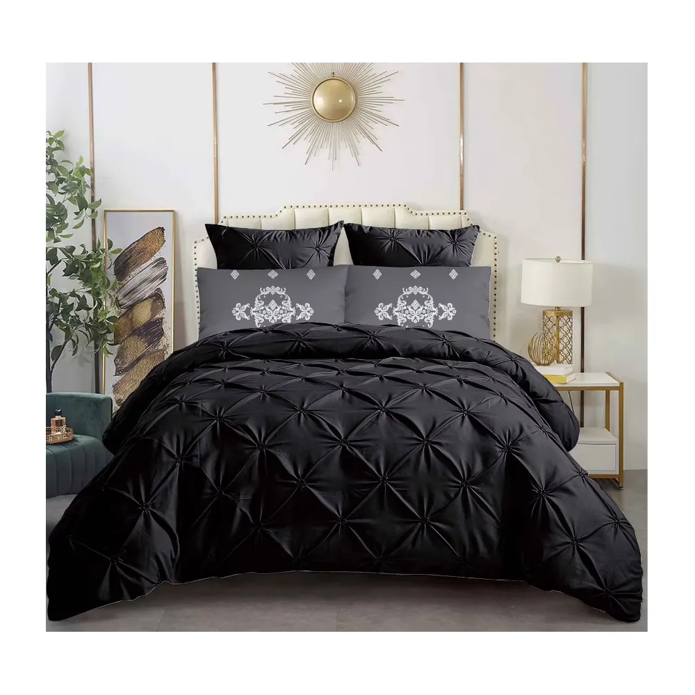 Lenjerie de Pat Dublu, Bumbac Finet-Creponat, 6 Piese, Negru - CPL25