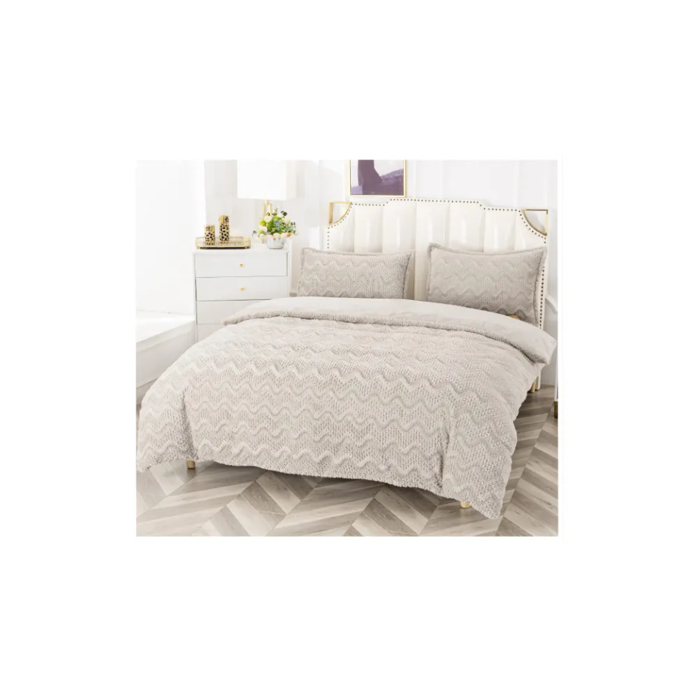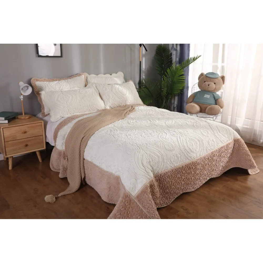Set Cuvertura Pat Catifea cu Blanita, Cream -LIM61