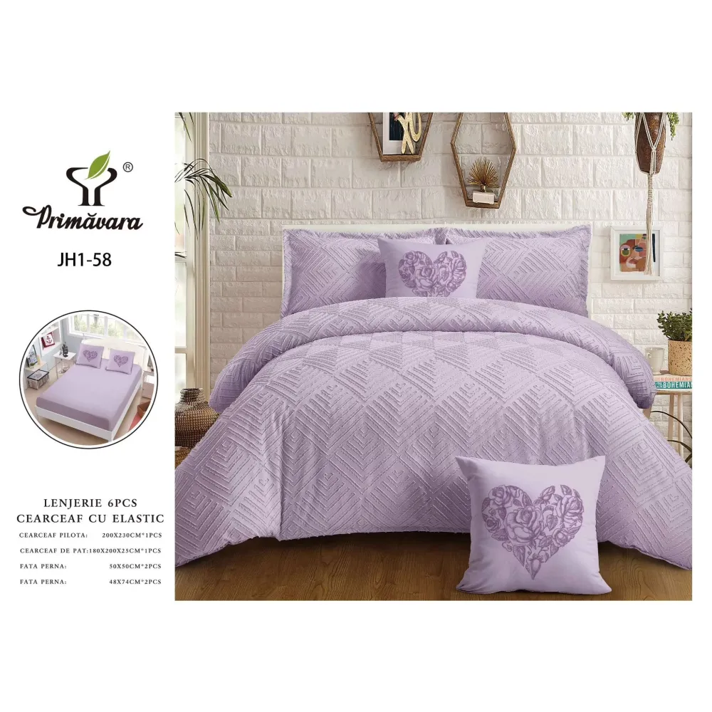 Lenjerie de Pat Dublu, Bumbac Finet-Creponat, 6 Piese, Lavanda - CPL21