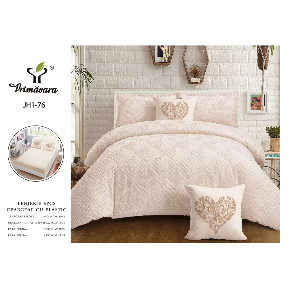 Lenjerie de pat Bumbac Finet 6 piese cu elastic - PUC76