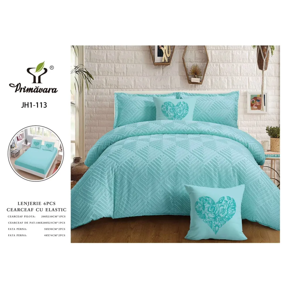 Lenjerie de pat Bumbac Finet 6 piese cu elastic - PUC80