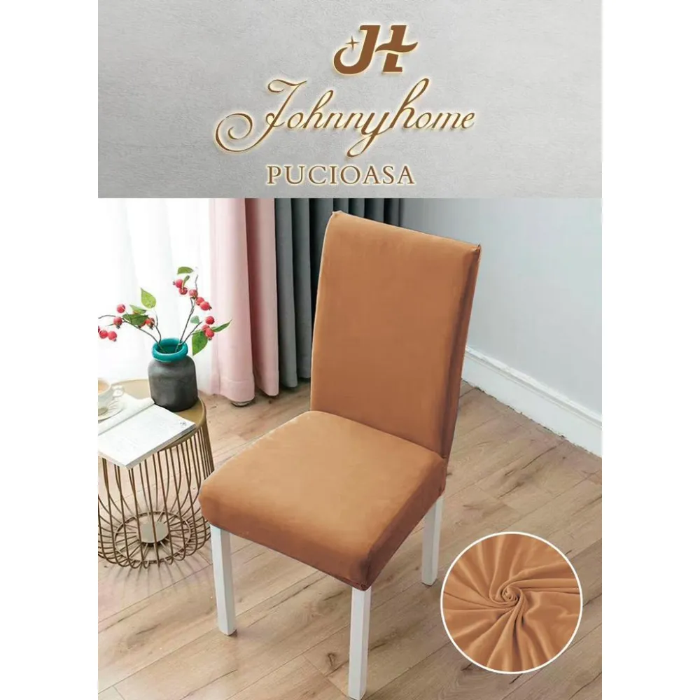 Set 6 Huse Elastice pentru Scaun, Bumbac, Maro - SIPRHSC-12