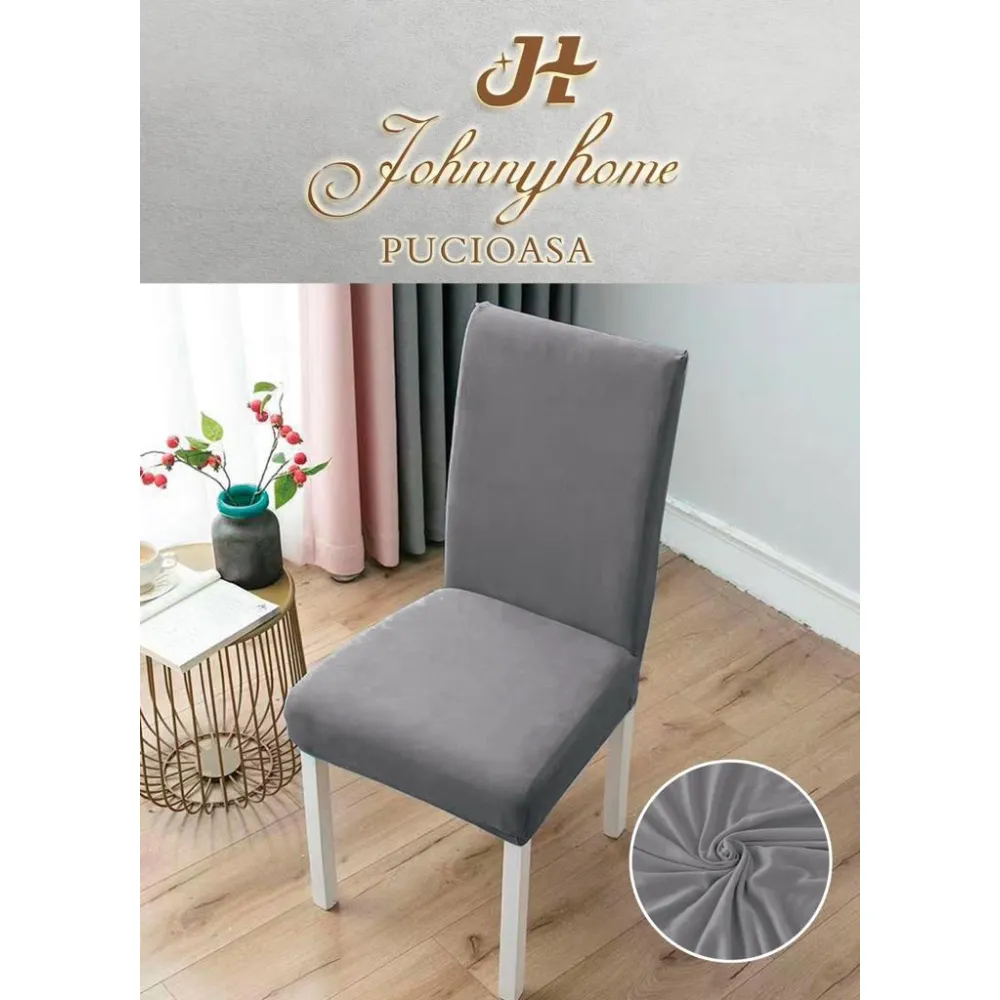 Set 6 Huse Elastice pentru Scaun, Bumbac, Gri Deschis - SIPRHSC-08