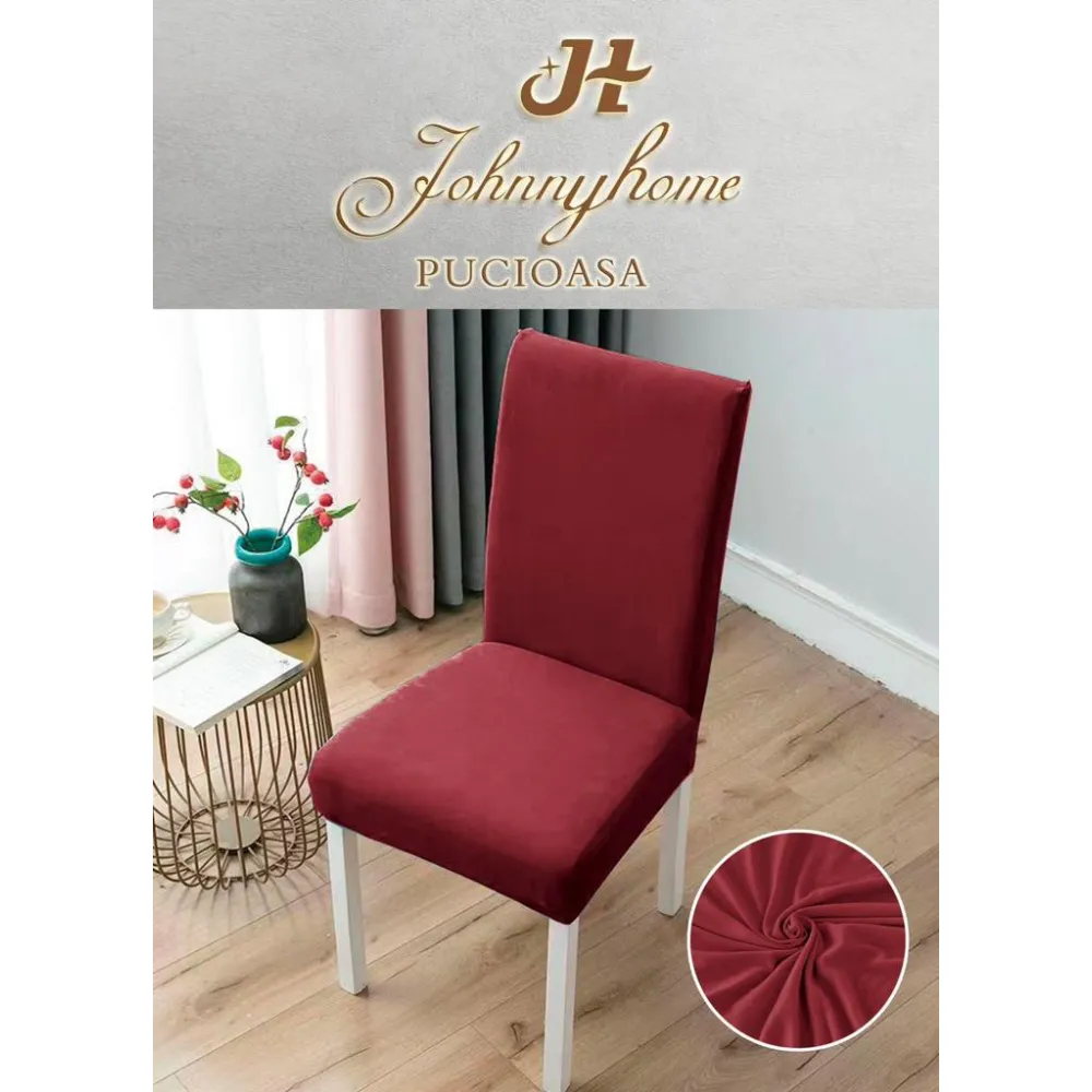 Set 6 Huse Elastice pentru Scaun, Bumbac, Bordo - SIPRHSC-11