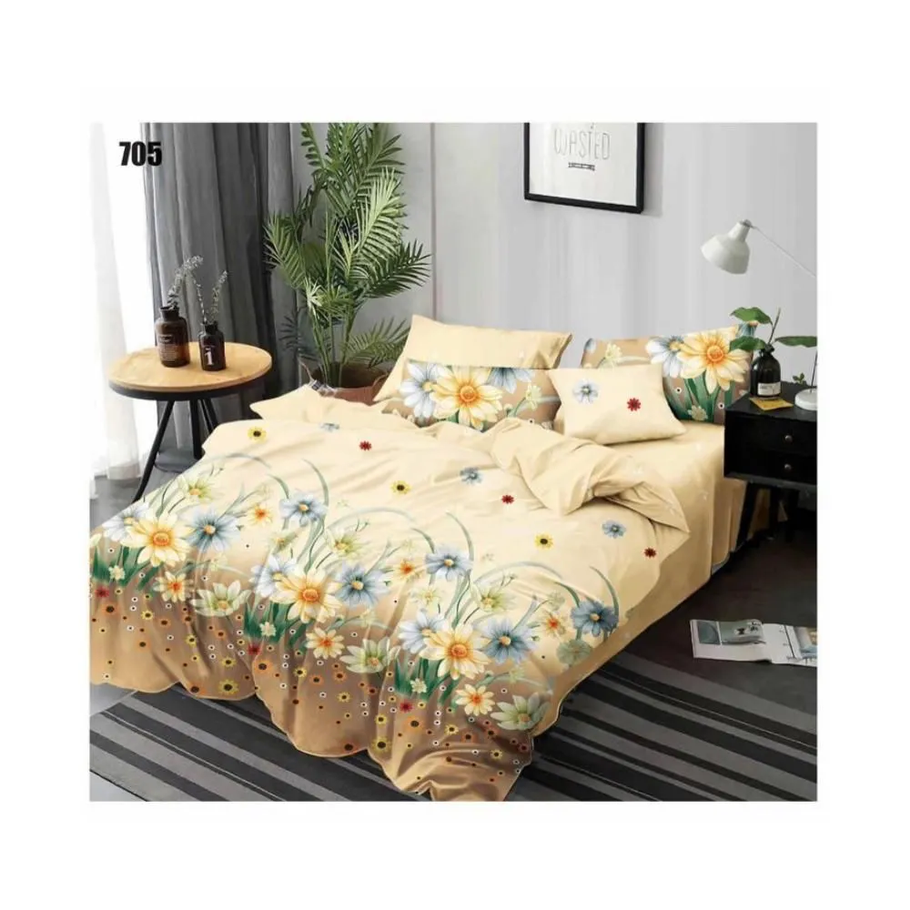 Lenjerie de Pat Dublu, Bumbac Finet-Creponat, 6 Piese, Bej - CPL222