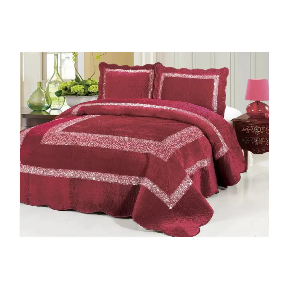 Set Cuvertura Pat Catifea cu Blanita,Grena-LIM62