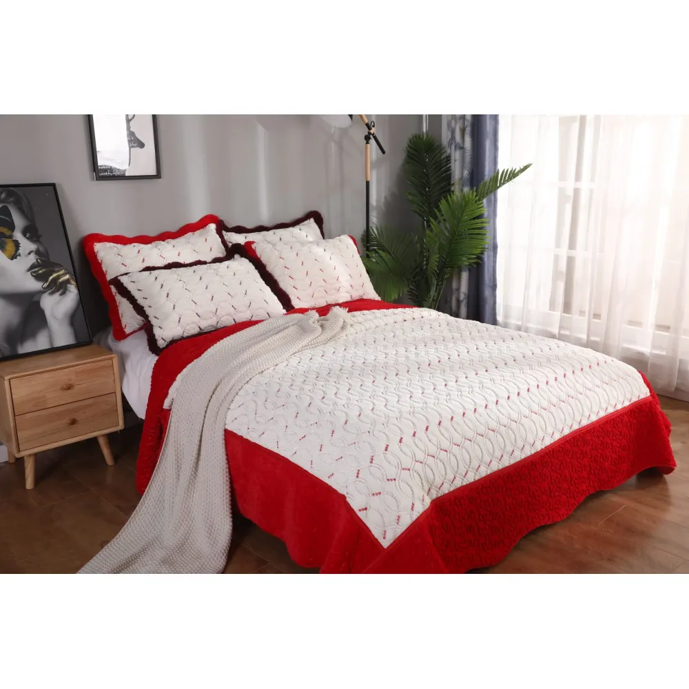 Set Cuvertura Pat Catifea cu Blanita,Rosu-LIM65