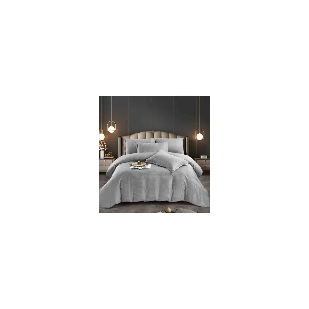 Lenjerie de Pat Damasc, 1 Persoana, 4 Piese, Gri deschis -JO246