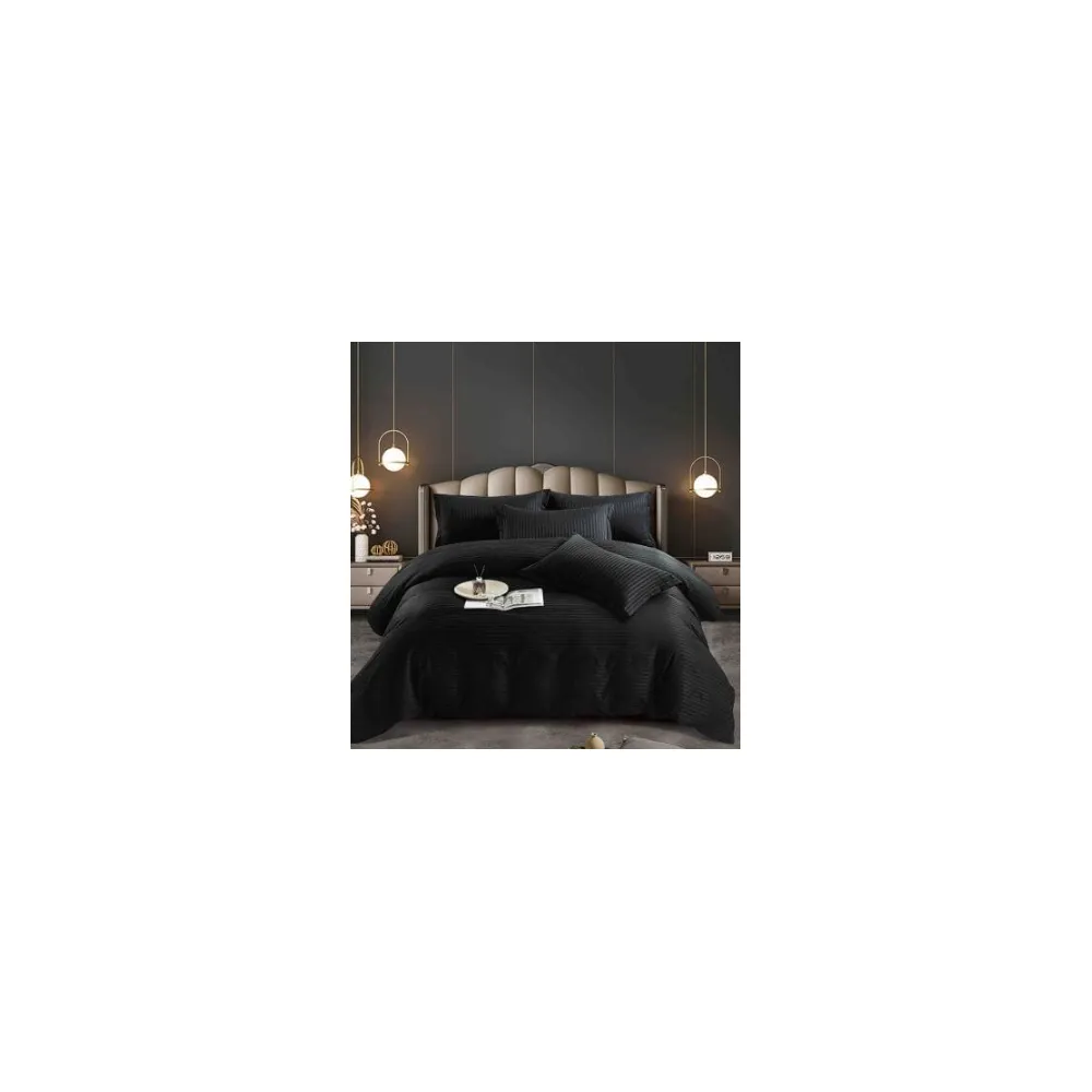 Lenjerie de Pat Damasc, 1 Persoana, 4 Piese, Negru -JO242