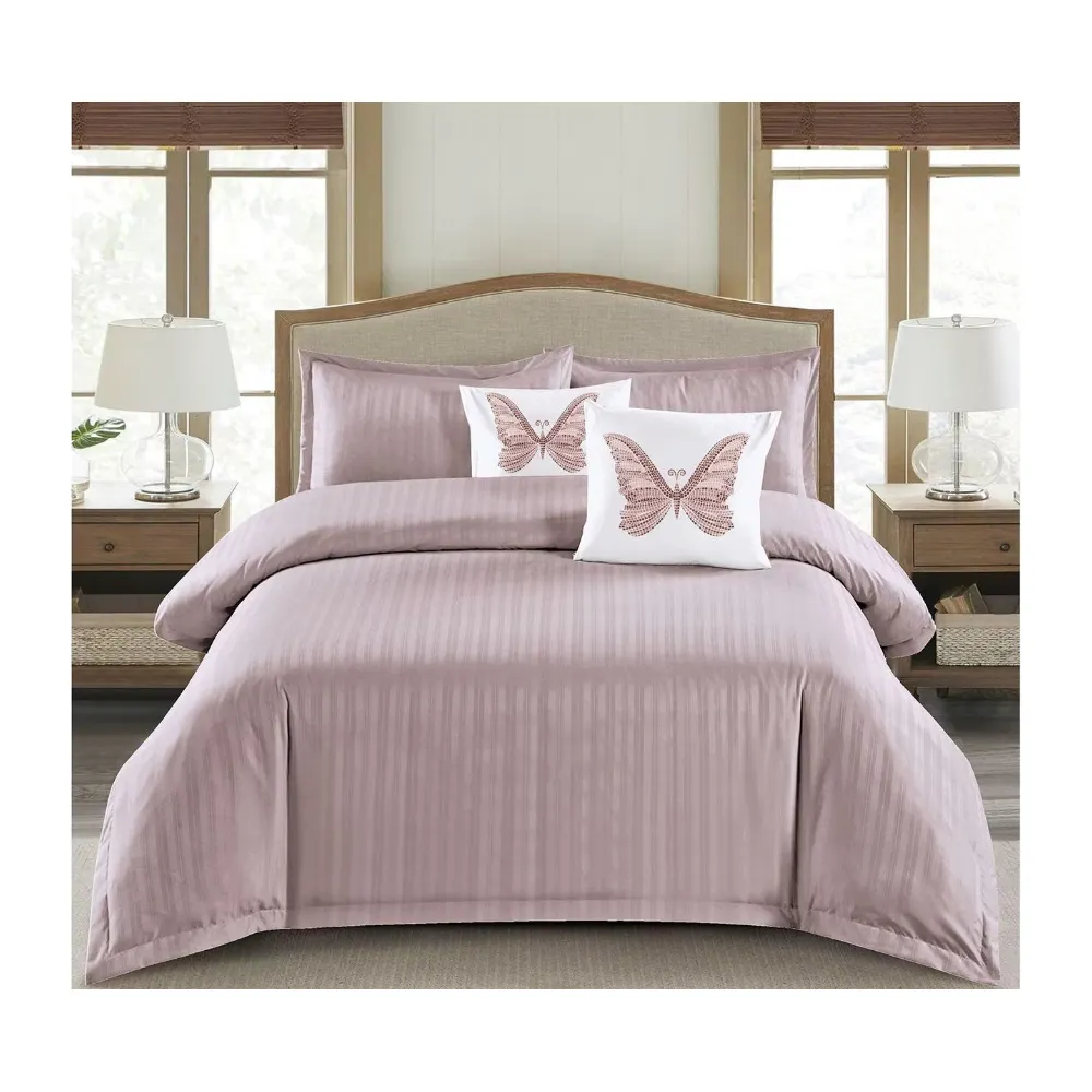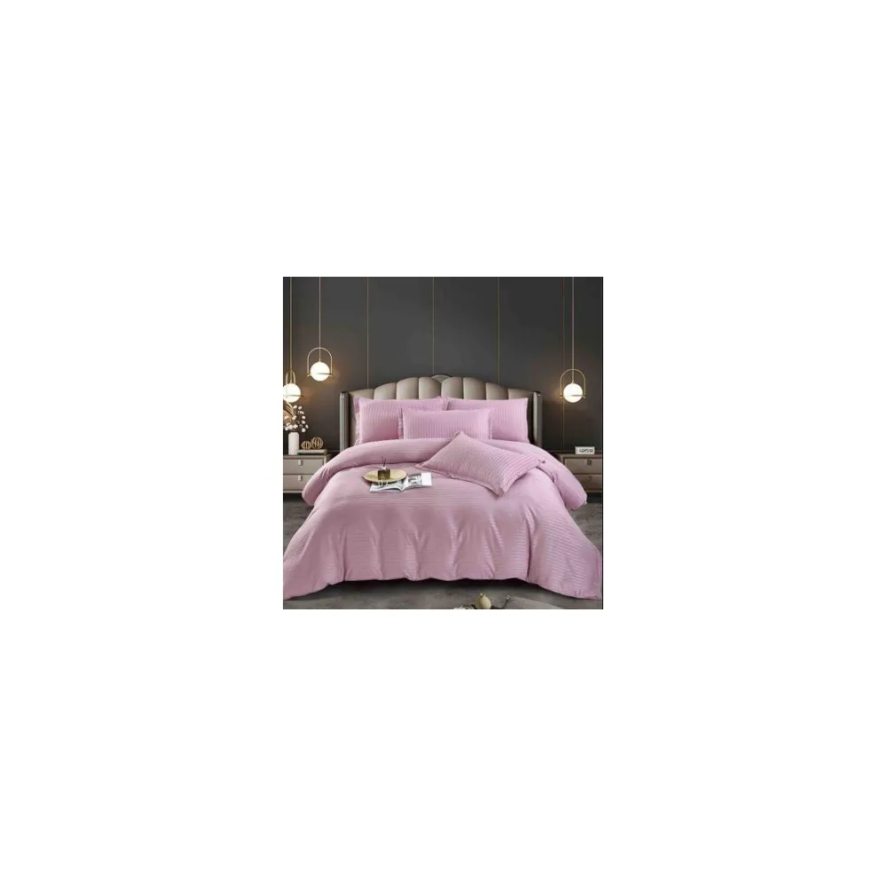 Lenjerie de Pat Damasc, 1 Persoana, 4 Piese,Roz Pudra-JO237