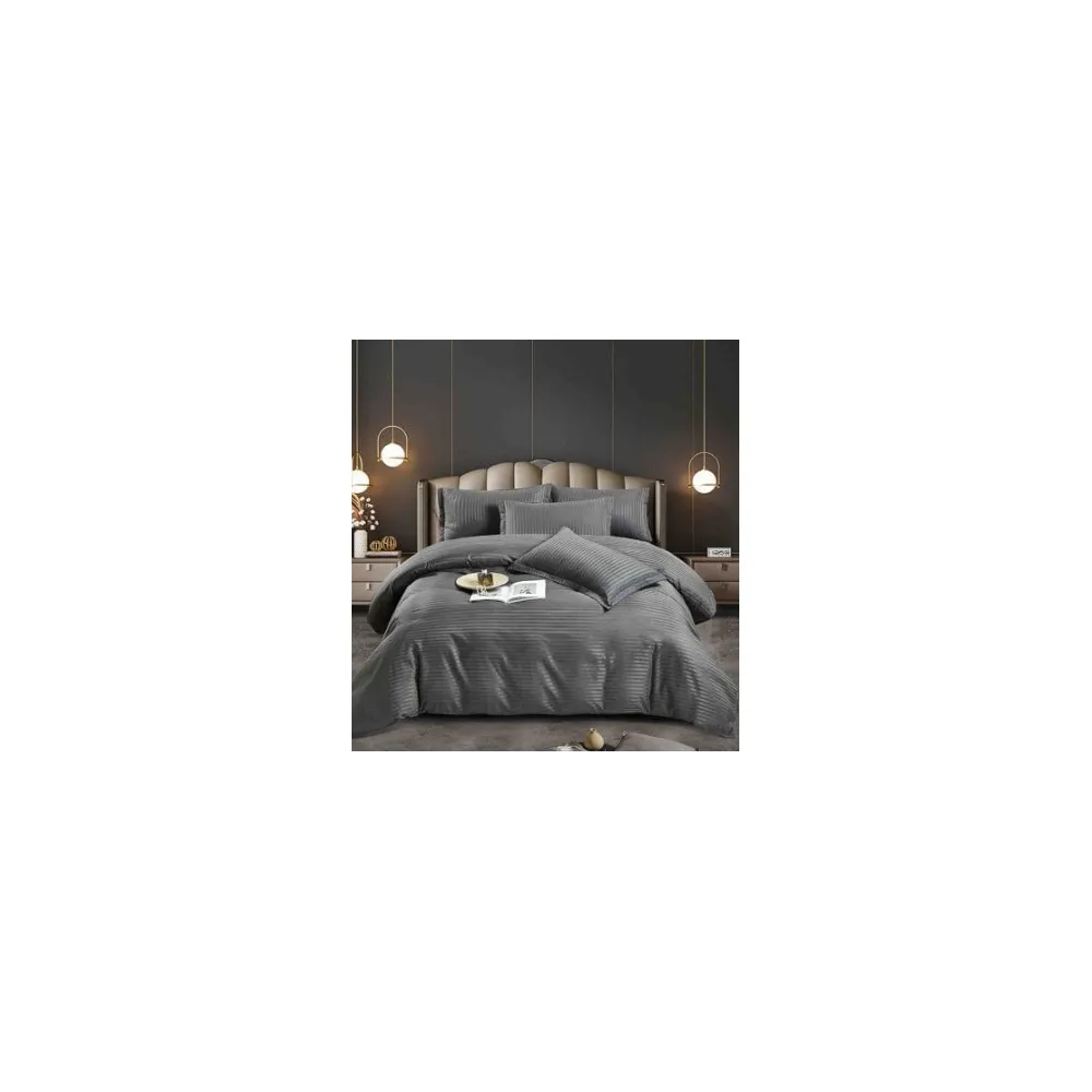 Lenjerie de Pat Damasc, 1 Persoana, 4 Piese, Gri inchis -JO245