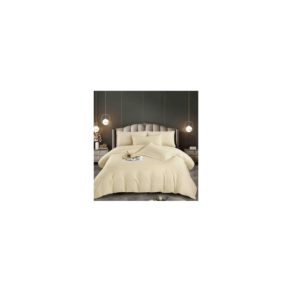 Lenjerie de Pat Dublu Cu Elastic - 100% Bumbac Damasc 6 Piese- JO166 Bej