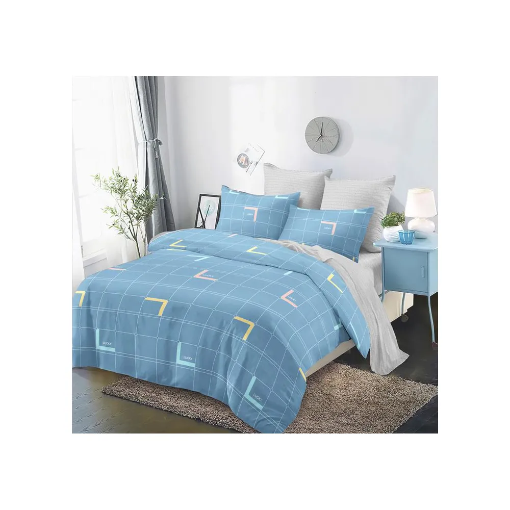 Lenjerie de Pat Dublu Cu Elastic - 100% Bumbac Damasc 6 Piese- JO169 Mov