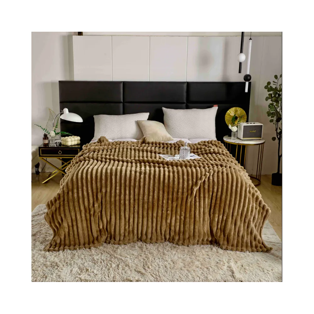 Patura Cocolino Gofrata Pentru Pat Dublu, Bej Inchis - JO565