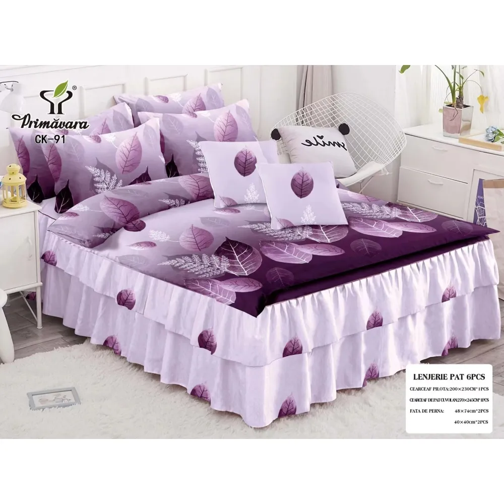Lenjerie de Pat Finet 6 Piese Cu Elastic- FLR8