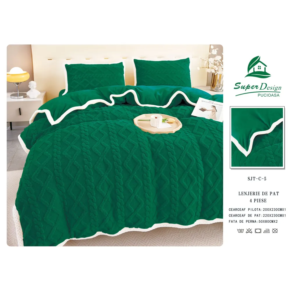 Lenjerie de Pat Damasc, 1 Persoana, 4 Piese, Verde-JO240
